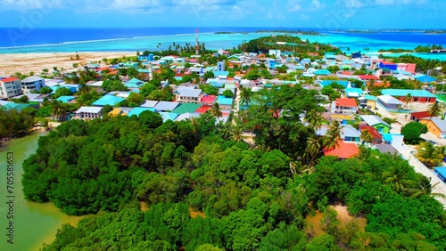 Huraa Island - Maldives - Aerial view over the place with the colored roofs