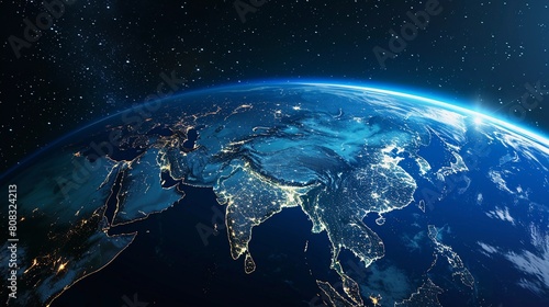 Earth Illuminated: City Lights Trace Continents at Night, with Asia in Focus (Data Visualization Concept)