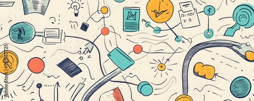 Hand-drawn illustration of a complex network of ideas