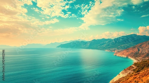 Stunning Coastal Landscape with Azure Waters and Lush Mountains