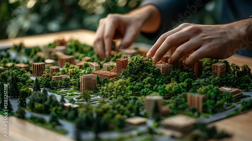 Eco Friendly Cityscape Model Hands Arranging Sustainable Urban Development Miniature