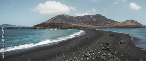 Volcano island's black sand beach in the Aeolian Islands, UNESCO World Heritage Site near Sicily, Mediterranean Europe, travel and landscape photography featuring sea, boat, and colorful scenery