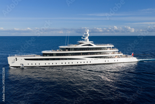 Yacht boat tour. Luxury boat yachting. Motorboat sailing at sea. Luxury private yacht in sea. Motor yacht luxury vessel. Boat motor aerial. Vacation on summer. Aerial view motorboat
