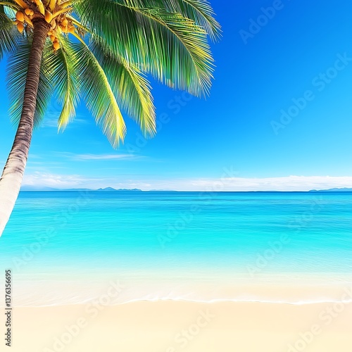Idyllic tropical beach scene with palm tree and ocean