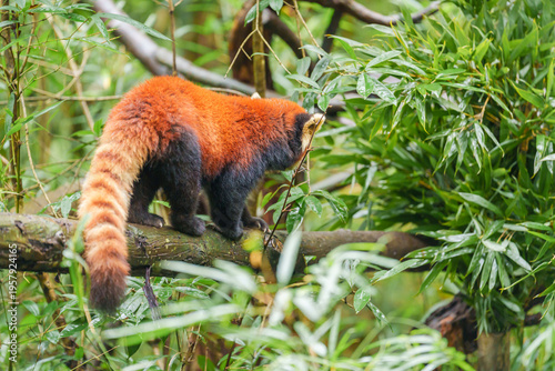 Cute Red Panda, Ailurus fulgens or lesser panda in forest at Chengdu Panda Breeding Research Center Dujiangyan. landmark and popular for tourists attractions in Chengdu, China. Travel and Vacation