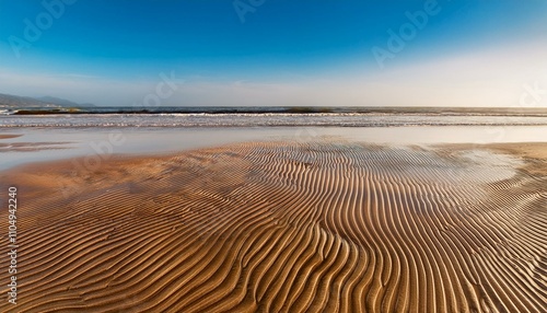 砂浜に残された波の模様、繊細な線状のアートが広がる