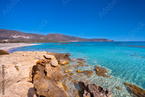 Wakacje na Krecie w Grecji. Idealna plaża Elafonisi z krystaliczną wodą.