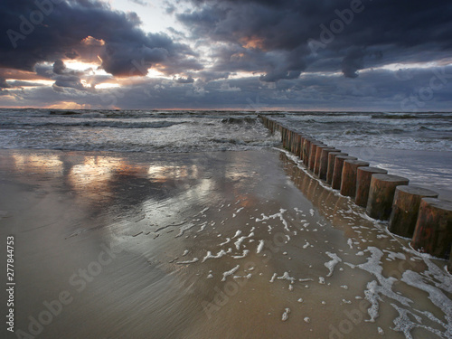 Morze zachód słońca - Falochron, płonące niebo