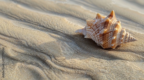 Tranquil Close-Up of Textured Seashell Resting on Smooth Beach Sand