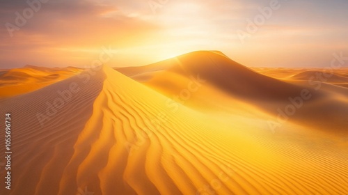A breathtaking desert landscape with flowing golden sand cascading down a towering dune
