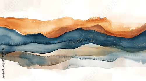 Abstract Watercolor Mountain Landscape in Earthy Tones and Blue Hues