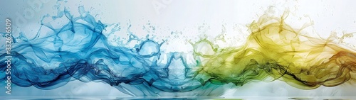 Abstract wave of collide blue, green, and yellow smoke. Best for banner abstract background.
