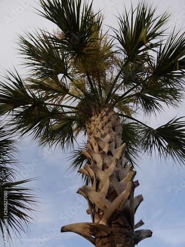 Upward shot of a palm tree, portrait view