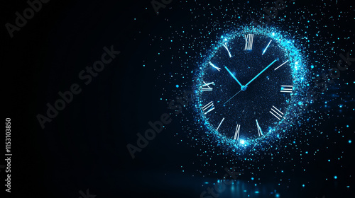 Clock of blue glowing dots. Particle clock. Vector illustration