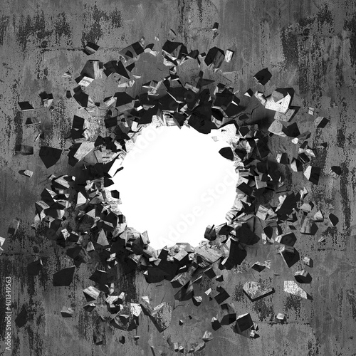 Cracked broken hole in concrete wall