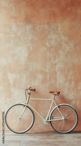 Vintage cream bicycle against textured wall