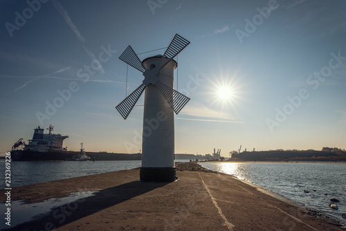 The windmill / lighthouse is a landmark of the Polish seaside resort Świnoujście. Concept: architecture or landscape