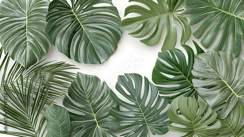 A Frame of Lush Green Tropical Leaves on a White Background