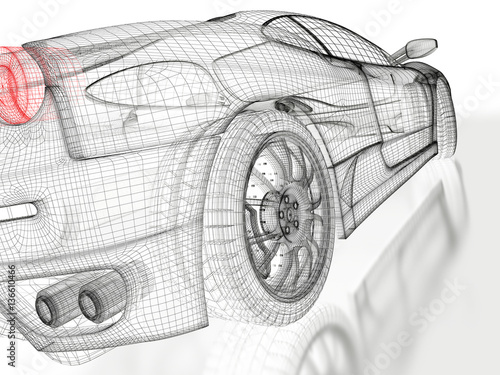 3D car mesh on a white