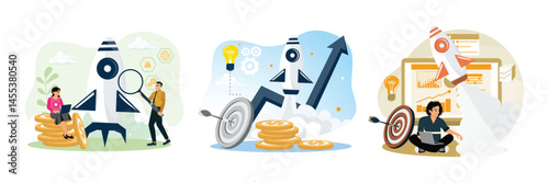 Business growth concept.rocket launch pile of money and creative ideas.