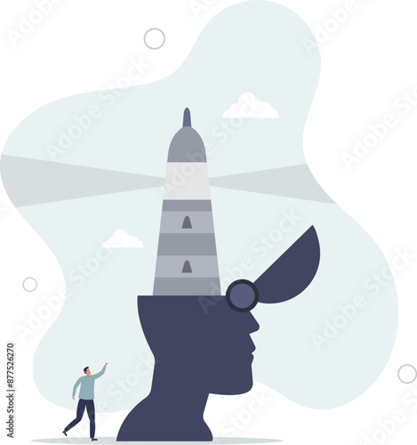 Vision to see direction, enlightenment or wisdom to discover new knowledge, solution or insight, guidance or searching concept.flat design.illustration with people.