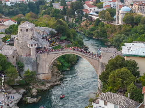 Bosnia and Herzegovina - Mostar city is the most popular tourist attraction with the famous old bridge with drone photo