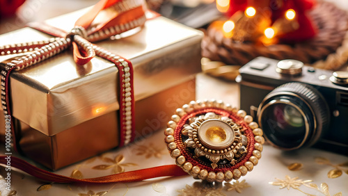 Bhai Dooj Gift Box and Rakhi on White Background - A Vector Illustration Featuring Glowing Elements, Modern Festive Design with Intricate Details