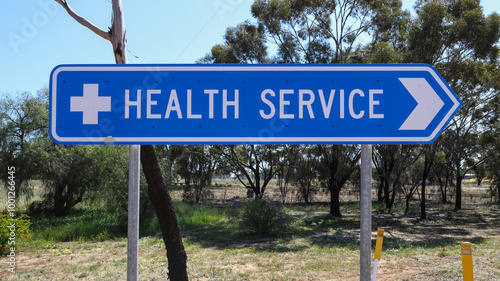 Directional road sign, to health services, small rural Outback town in Western Australia