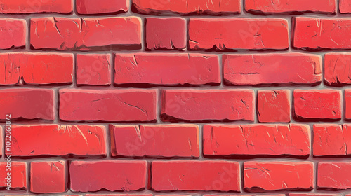 Czerwona ceglana ściana o gładkiej, powtarzalnej strukturze, doskonała do wykorzystania w różnych projektach graficznych i architektonicznych.