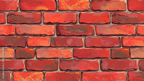 Czerwona ceglana ściana o gładkiej, powtarzalnej strukturze, doskonała do wykorzystania w różnych projektach graficznych i architektonicznych.