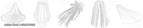 White wedding bridal veil, tulle fabric isolated on transparent background, PNG. Clipart template