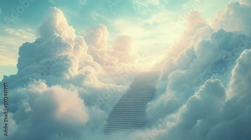 Dreamy Stairs in Ethereal Clouds at Sunrise