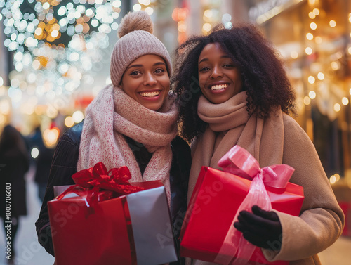 młode kobiety na świątecznych zakupach.