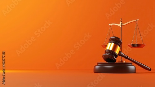 A gavel and scales of justice on an orange background, symbolizing law, justice, and legal proceedings.