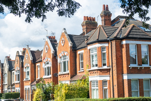 Street of typical British brick terraced houses in suburban London- UK
