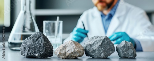 A scientist in a lab analyzing mineral samples from a mine, symbolizing the connection between science and mining