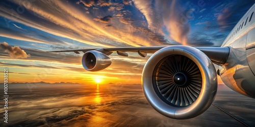 Close up view of vintage aircraft jet engine on wing at sunset, jet engine, vintage, aircraft, wing, close up, blades