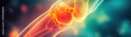 Vibrant illustration of a human knee joint, highlighting the structure and potential ailments. Ideal for health and medical projects.
