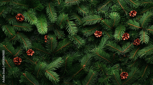 Tło składające się z gęstych gałęzi choinki, pokrytych soczystą zielenią, wprowadza świąteczny klimat.