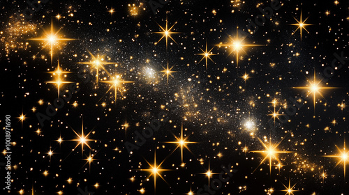 Nocne niebo, głębokie jak nieskończoność, jest pełne iskrzących gwiazd, które migoczą na czarnym tle jak małe punkty światła w otchłani.