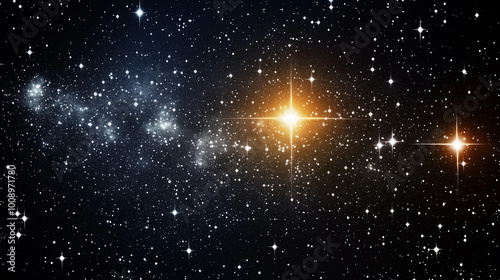 Nocne niebo, głębokie jak nieskończoność, jest pełne iskrzących gwiazd, które migoczą na czarnym tle jak małe punkty światła w otchłani.
