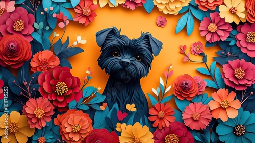 A dog discreetly conceals itself amidst vibrant blooms A dog hidden among colorful flowers