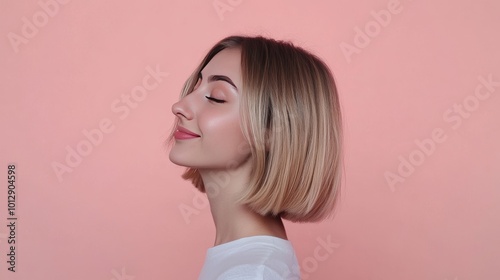 Stunning Profile Portrait of a Woman Against a Soft Pink Background