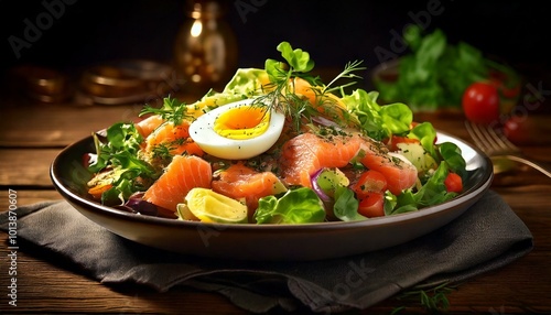 Sałatka z jajkiem i wędzonym łososiem