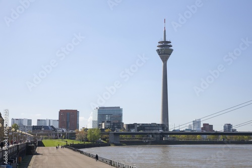 Riverside of Rhine with Stadttor, Parliament and Rhine Tower, Düsseldorf, North Rhine-Westphalia, Germany, Europe