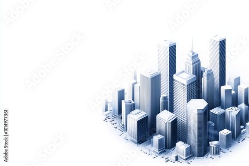 A sleek, minimalist skyline illustration featuring modern skyscrapers and city architecture against a white background.
