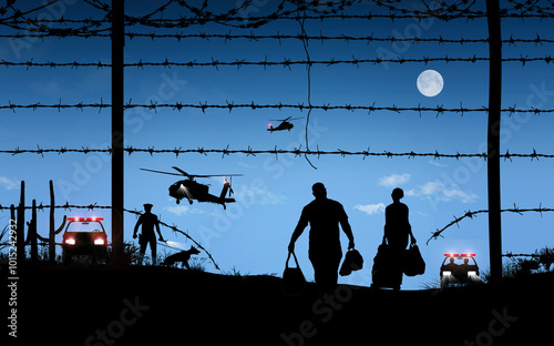 USA and Mexico border A man and woman with baggage are spotted by a USA border control helicopters and agents in cars putting a stop to their illegal entry attempt.. They entered via a breach i