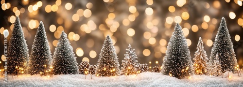 Xmas tree decorated with garland lights. Holiday festive background. Widescreen frame backdrop. New year Winter art design. Christmas scene narrow screen holiday border.