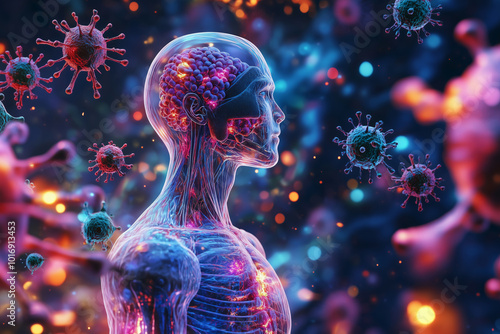 Exploring the intricate relationship between human immunity and pathogen defense in a vibrant world of cells and microbes