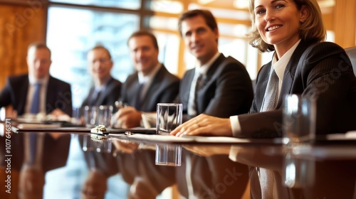 Corporate leaders discussing business growth strategies in an executive boardroom